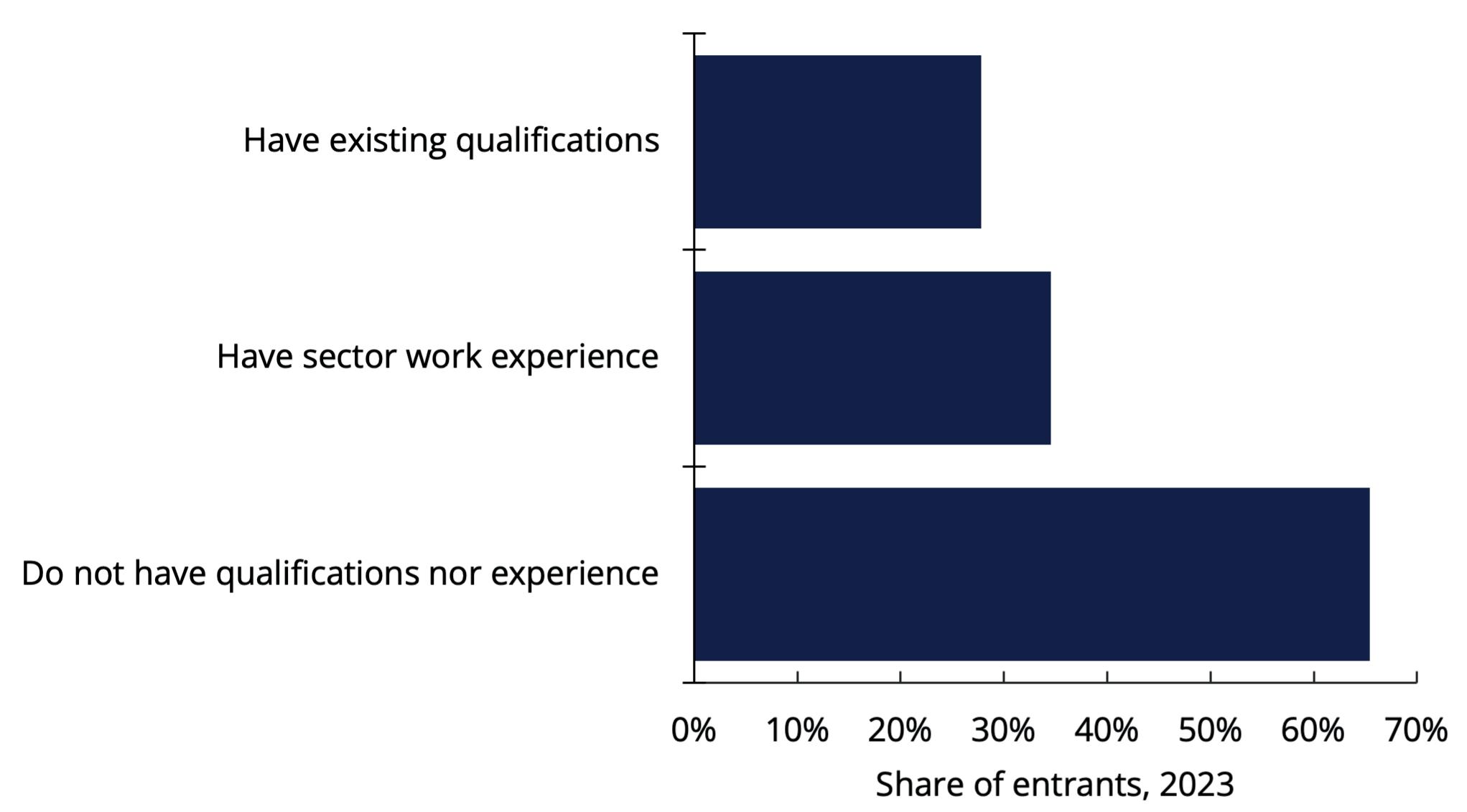 劳动力不仅关乎招聘,还涉及培训、领导力建设和员 工留任。由于大多数新入职人员缺乏正式资质或经 验,因此在岗培训、导师指导和企业内部发展显得尤 为重要。