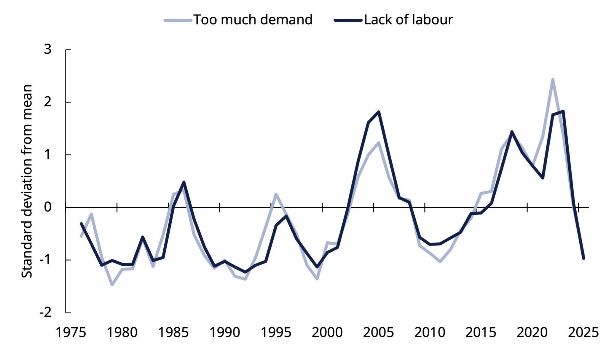 建筑业的周期波动明显。低谷虽令人痛苦,但高峰同 样强劲。被推迟的项目以及已获批却积压的开发项目 将被逐步落实,进而带动更广泛的行业复苏。一旦回 升到来,反弹增长的势头将非常强劲,而长期存在的 劳动力短缺和生产率低下的难题也将随之再次显现。