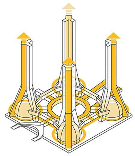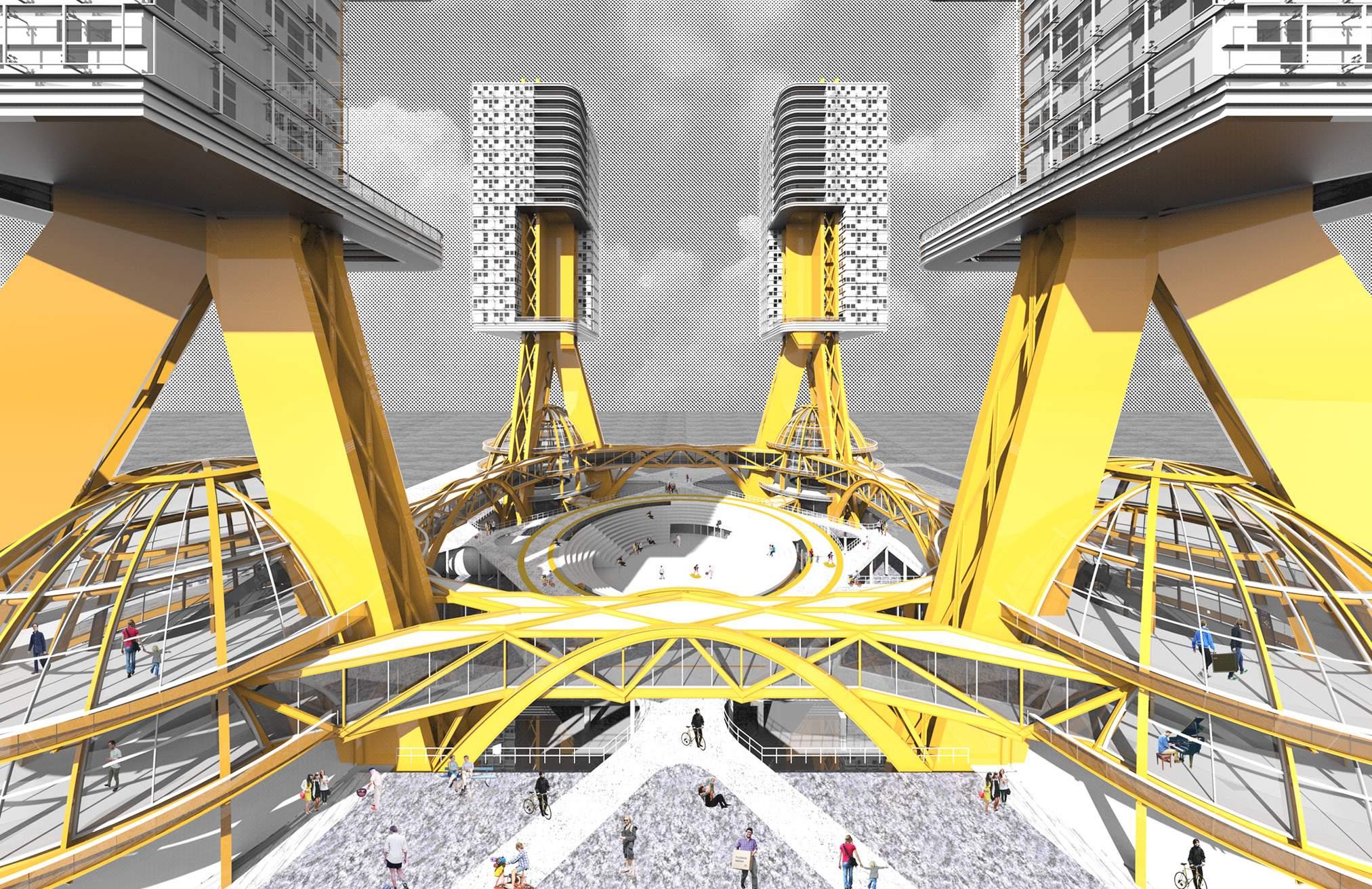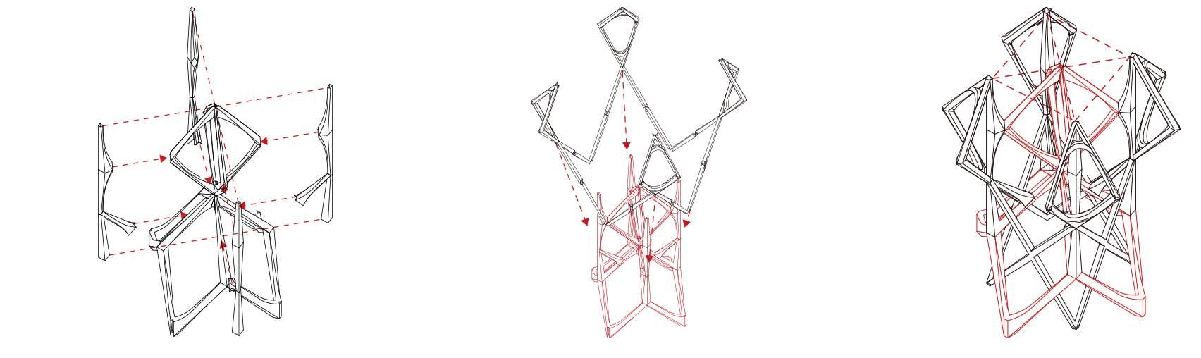 This project explores the structural system of a skyscraper. In tradition, a tall building is framed by the vertical concrete core and the curtain wall system, which leads to homogeneous layered floors. In this project, I try to develop a structural system that is non-linear and can grow upwards in an autonomous way. Starting from a plane centrosymmetric geometry, the structure rotates, folds, and grows itself, generating various space for new possibilities.