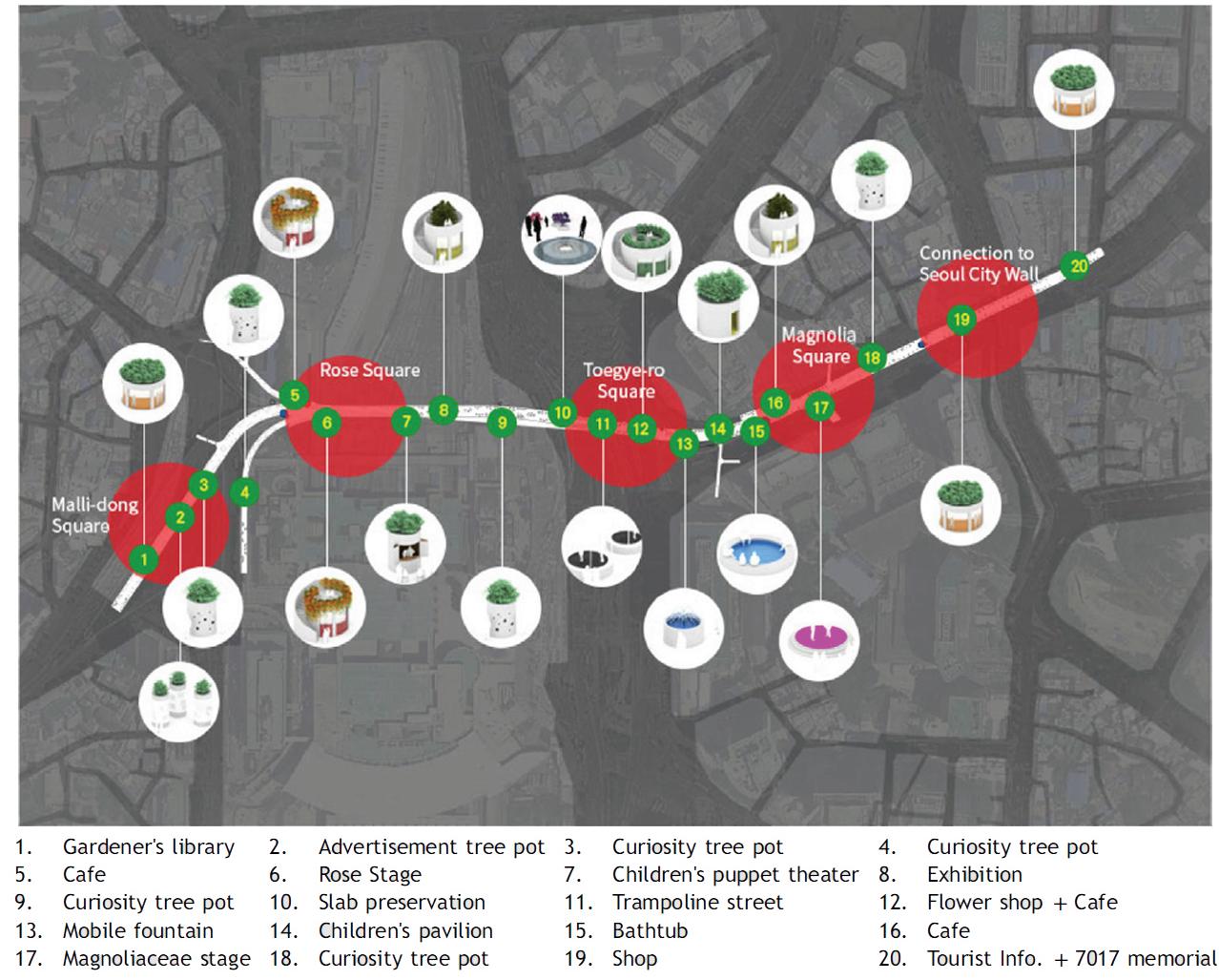 Hong, Y. (2018). Actual condition of Seoullo 7017 overpass regeneration project based on field surveys. Frontiers of Architectural Research, [online] 7(3), pp.415–423. doi:https://doi.org/10.1016/j.foar.2018.06.007.