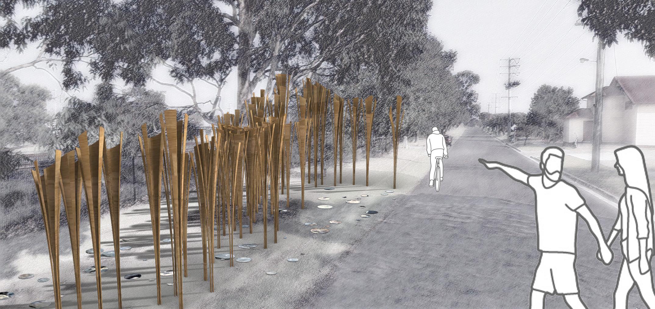 - The path through the Memorial imitates the course of the Glyde River estuary.