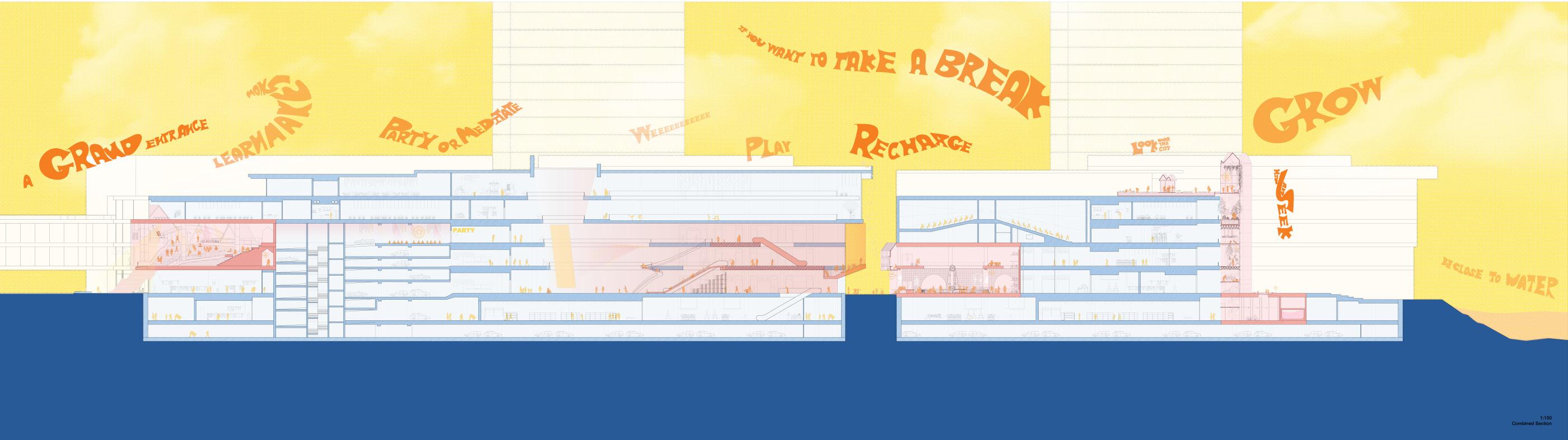 The design proposes strategies and features of public platforms in existing shopping mall infrastructure to expand the definition of public space in Shenzhen. Four interventions for learning, playing, resting, and gathering take advantage of the vacant areas in malls and interrupt the closed world of retail to make malls more accessible for the public. On a broader framework, the thesis seeks to address ways to re-appropriate underused urban typologies in order to create and protect space for collective fulfillment.