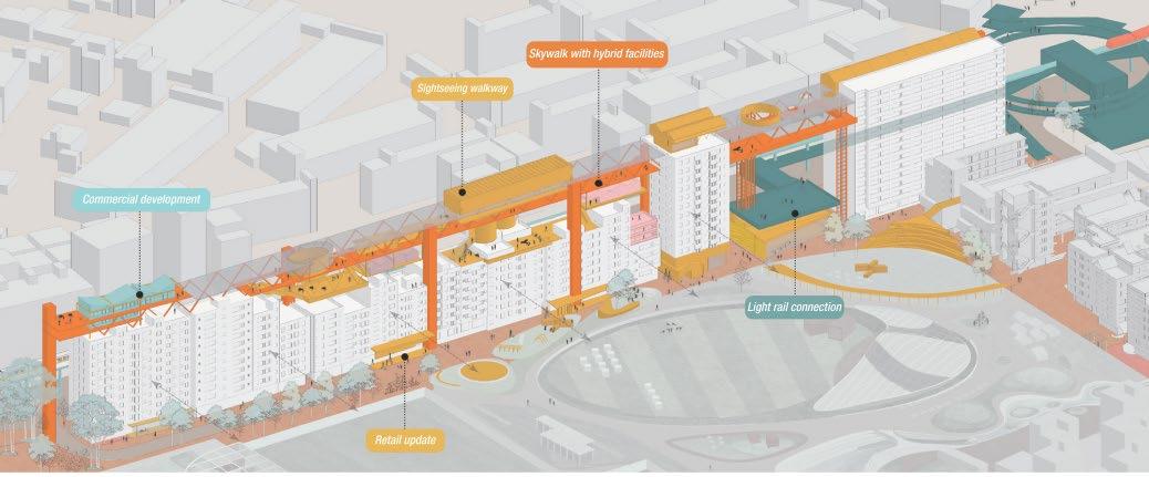 The centrality of the site is set up with a mixed-use corridor as the extension of the Boston Harbour Walk. The pedestrian boulevard is defined by five main public nodes: Aquaculture farms, cultural facility, central park, sea market, and recycling industries. The thickened belt serves as a pedestrian porous edge that defines a more cohesive residential neighborhood on the south side and a more scattered residential neighborhood on the north side to give more space to species habitats. New parks along the boulevard also enhance the public access to the waterfront.