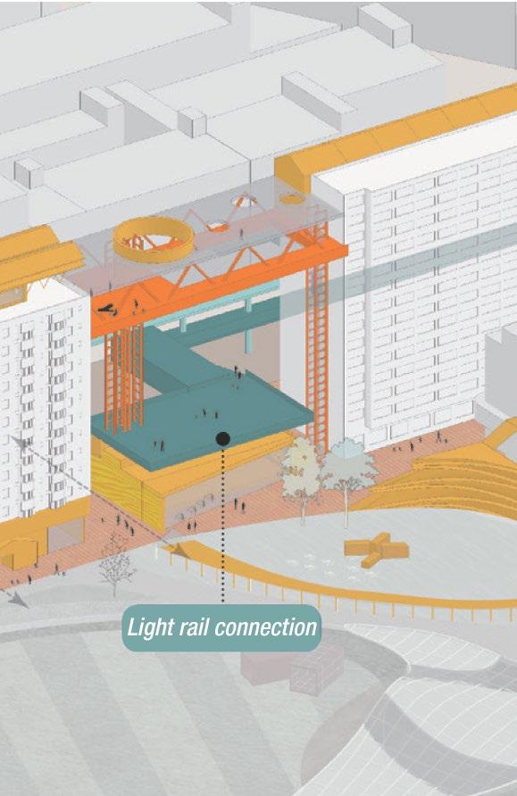 The thickened in-between belt serves as a patchwork that connects the previously separate industrial edge of seaport and residential edge of south Boston. At the site, it becomes the actor that shifts the existing axis of the urban grid, threads the existing park with new ones, and generates a sequence of public space narratives that bring both visitors and residents into and through the site.