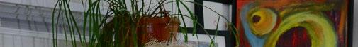 In zo’n periode zijn haar schilderijen eerst donker. Zwaar. Ik mag er twee zien en voel gelijk het gewicht. Het zijn er slechts twee. De echt droevige werken zijn weggestopt. De rest van de schilderijen in haar atelier zijn licht en abstract. Ze tekenen de fase waarin ze nu zit. ‘Moeten’, schilderen en hardlopen komen in balans en dat geeft ruimte om, voorzichtig, vooruit te kijken én te dromen.