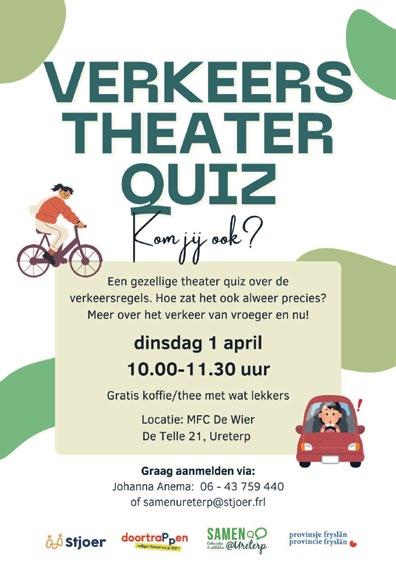 URETERP – Hoe zit het ook alweer in het verkeer? Die vraag staat centraal tijdens de verkeerstheaterquiz op dinsdag 1 april (10.00 tot 11.30 uur) tijdens het ontmoetingsmoment Samen@Ureterp in De Wier in Ureterp,