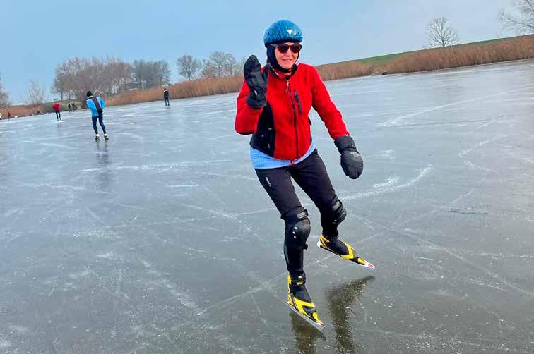 Oeke kan enorm genieten van alles rond het schaatsenrijden. Ze probeert woorden te vinden omdat magische gevoel te duiden. “Je bekijkt de wereld ten eerste van een andere kant. Maar het is ook het geluid. Ik zwem het hele jaar door in het buitenwater. Vlak voor het decemberwintertje lukte dat nog, maar twee dagen later kon ik het ijs niet meer kapot krijgen. Ik stond toen samen met Rients op de wal om naar het zingende ijs te luisteren. Dat gelukzalige gevoel is amper te omschrijven. Als het begint te vriezen krijg ik een ‘knijperig’ gevoel in de maag en speelt bij mij de vraag wanneer het moment daar is dat we ook daadwerkelijk kunnen schaatsen.”