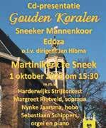 SNEEK - Op zondagmiddag 1 oktober half vier geeft het Sneeker Mannenkoor Edoza een gratis toegankelijk concert in de Martinikerk in Sneek. Dit ter gelegenheid van de presentatie van de nieuwste cd ‘Gouden Koralen’