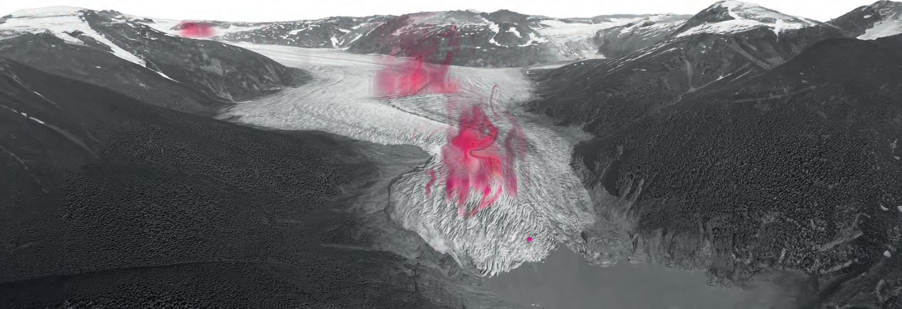 A glacier cave, a fleeting marvel of nature, exists momentarily yet intricately entwined with the collective and ceaseless forces shaping our world. Despite its apparent void, it conceals a remarkable power that only becomes apparent when we perceive the emptiness within as a substantial volume. Standing at the entrance of the glacier cave, nestled at the glacier's terminus, I carefully ignite a smoke source before sealing the entrance shut. With each wisp of smoke, we begin to unravel the complex tapestry of forces that have sculpted this space over time. As we rewind the historical imprints of these powerful forces in reverse order, we unveil the latent potency concealed within the void. Slowly, almost imperceptibly at first, the smoke begins to permeate the space, gently rising and weaving its way through the cracks and crevices in the icy walls. With each passing moment, the smoke gathers momentum, ascending through the gaps and fractures on the surface with increasing fervor. In this delicate dance between smoke and ice, we witness the magnitude of the underlying force that has shaped this cave, the sheer power of nature made tangible before our eyes. Through this visual spectacle, we gain a deeper appreciation for the intricate dynamics at play within the glacier cave, a testament to the enduring influence of natural forces on our ever-changing planet.