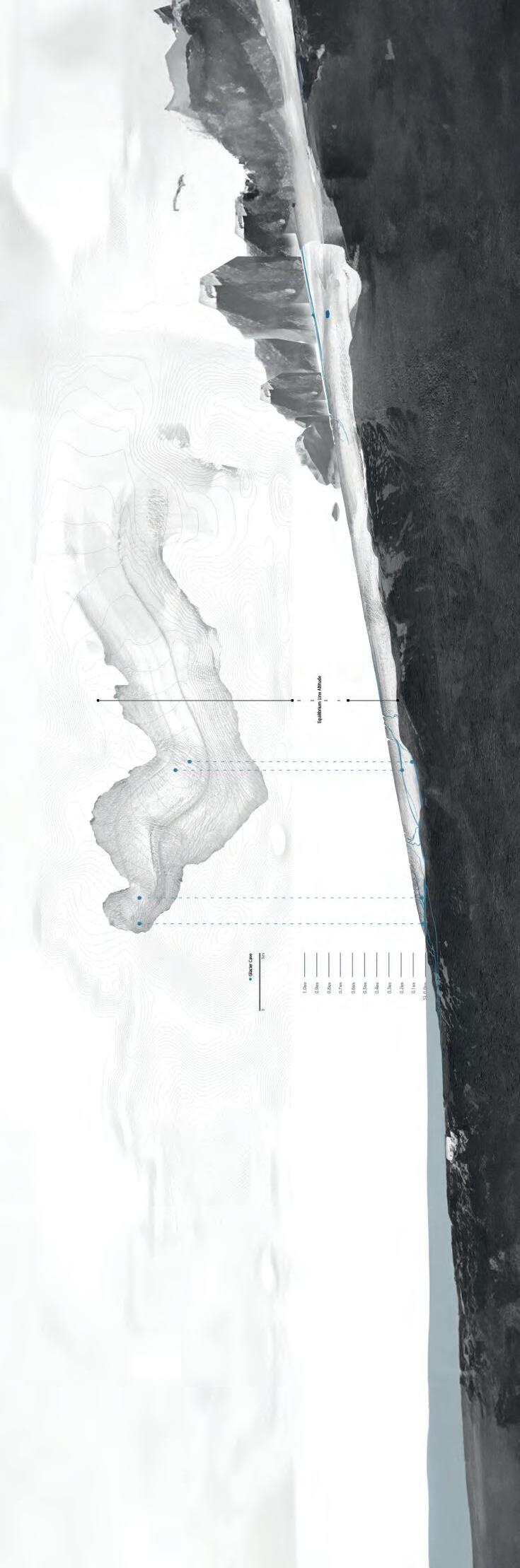 Glacial caves, fleeting as they may be, serve as transient yet profound spaces molded over extensive periods of time by a complex interplay of continuous and collective forces. These forces, while imperceptible to the naked eye, imbue the cave's interior with an intangible energy that becomes palpable when perceived as a solid, volumetric mass. This conceptual shift allows me to delve deeper into the intricacies of natural processes, providing a clearer insight into the unseen forces that shape our world. In order to understand the power of this space, it is necessary to see the empty space as a space with volume.