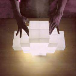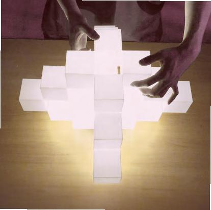 The three-dimensional connection of the scissor structure allows the shape to be deformed by external forces, and the light intensity can be adjusted strongly