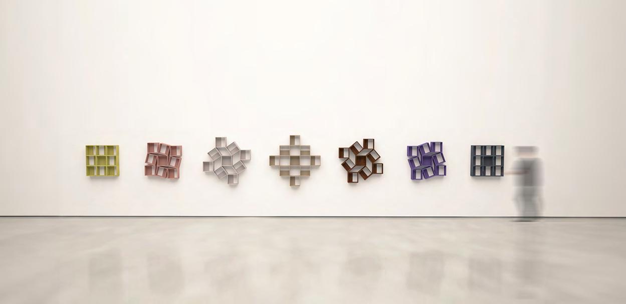The shape is constantly changing due to the imbalance of the weight of the objects on the shelf. The imbalance of weight keeps the overall shape balanced.