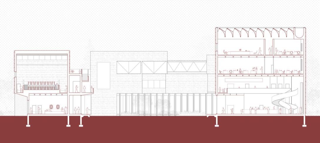 This project is adjacent to a factory in the northeast China heavy industrial base, and serves as a museum of northeast scars literature documenting the process of the northeast's heavy industry's transformation from prosperity to decline, and then to its current economic recovery. The northeast scars literature has been transformed from a text into an architectural space, allowing people to experience the changes in the northeast China heavy industry over the past decades, and to remember the past while moving forward.