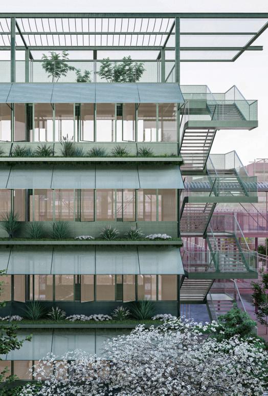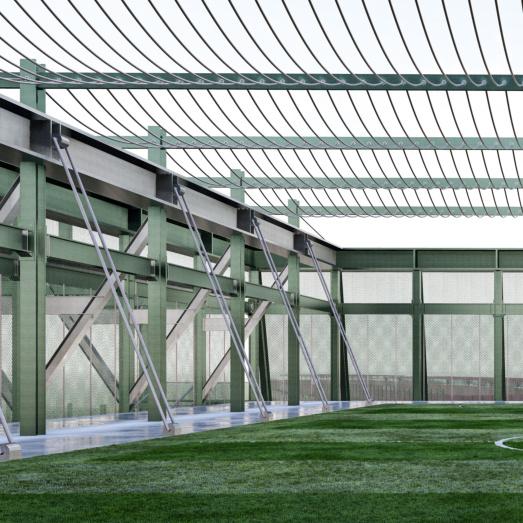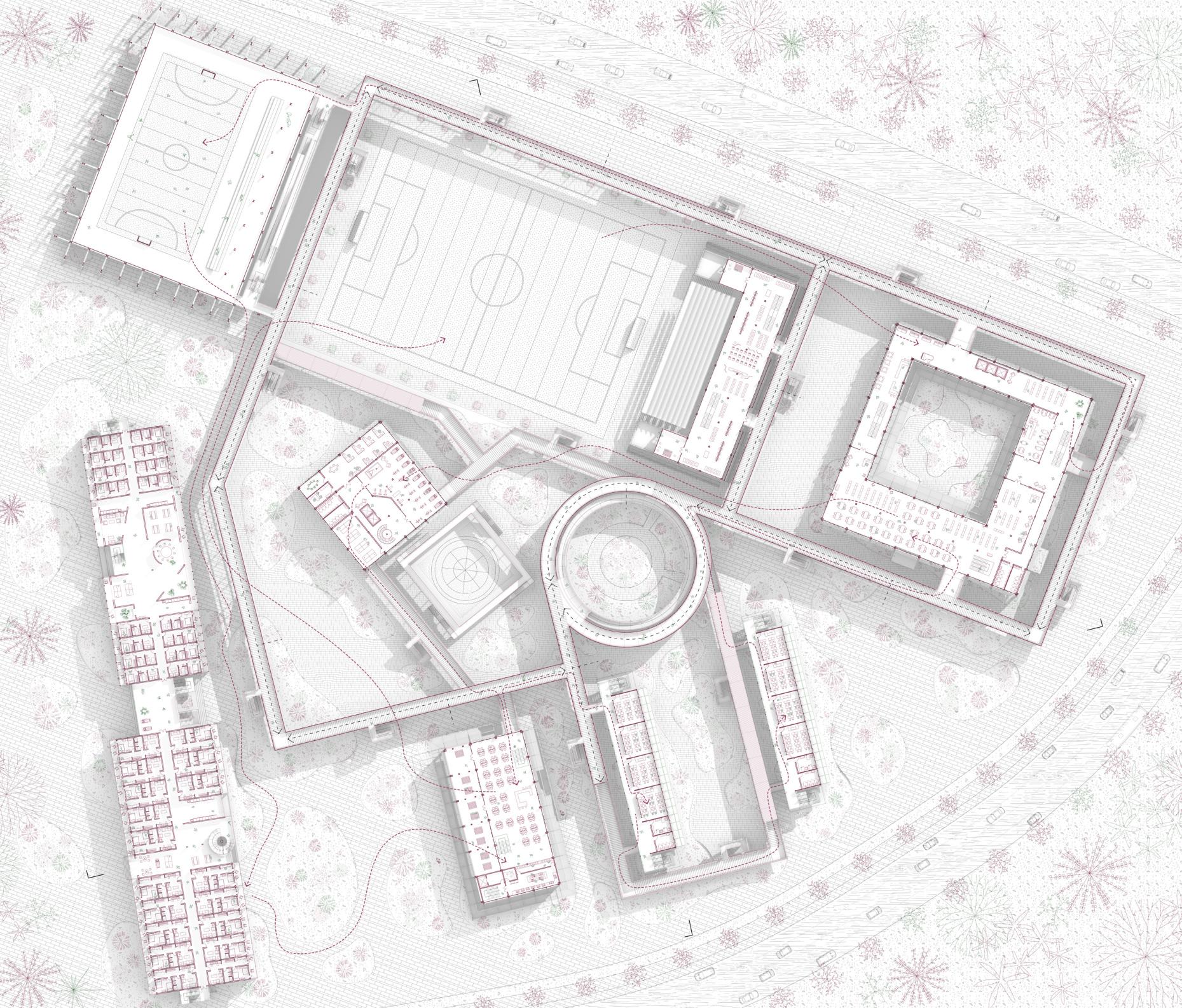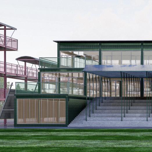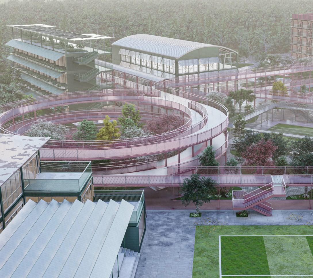 In order to alleviate the problems of uneven distribution of resources and weak youth training, the design of this project focuses on breaking the boundaries between traditional training and daily life, integrating elements of life and promoting the all-round development of young people. Youth on campus can not only train on the football field, but also improve themselves through a lifestyle approach. In this project, in addition to the traditional flats, teaching buildings and office buildings, vertical pitches open to the public, diversified stands, and a football honours Gallery have been added. The buildings are connected through air corridors to form an organic and functional campus, allowing the public to engage in perception and imagination about football, and to immerse themselves in the emotional value that football brings to people.