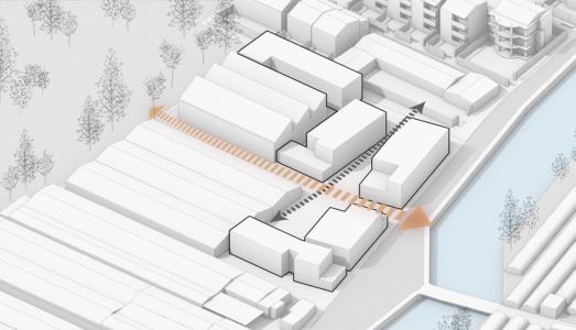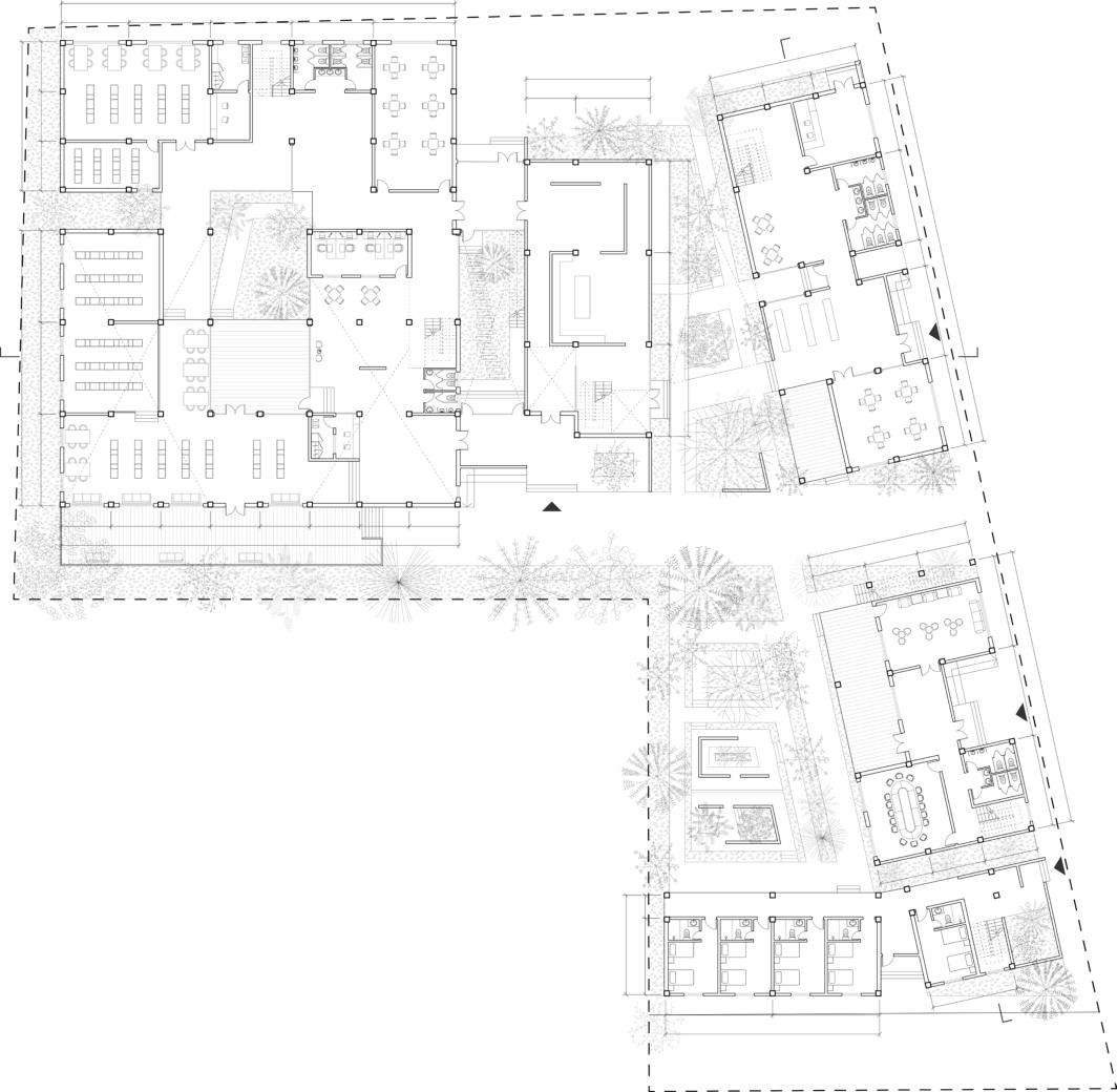 Establishment of the traffic and landscape axes based on site characteristics.
