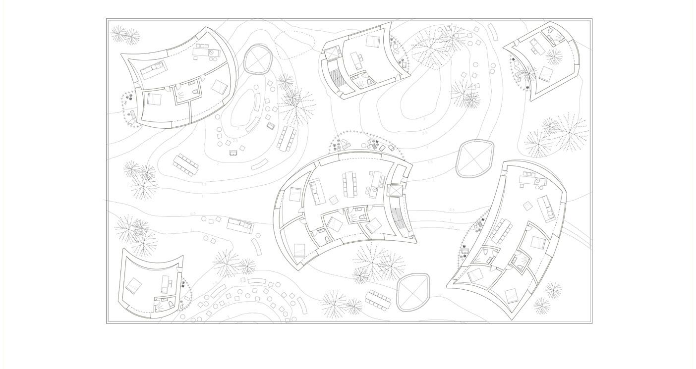 The new structure transformed the school building, which initially followed the principles of modernist architecture of minimalism and efficiency, into an inefficient building composed of shear walls and topographically undulating concrete slabs. Taking into account the original community character of Puerto Rico, the residence is set up in four house types to meet the needs of multi-generational clustering.
