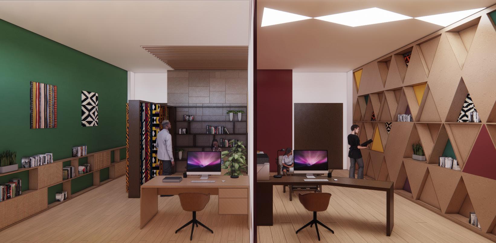 This project is a renovation of a Latin American school. It's a group project and we created an environment promoting culture and communication between students, teachers, and visitors from all backgrounds, either in classroom or public space. My responsibility was to design several offices in one part of the school