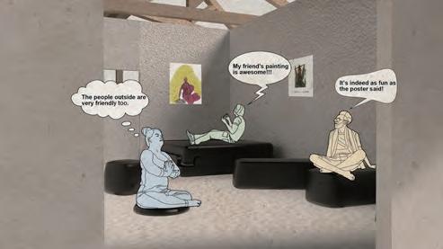 Passerbys (red) Character: they may visit just for a hot bath, but they may be disappointed because the program is about artbrut, which is traditionally disposed in society. But after hearing or overlooking several programs, they would feel attracted and started have the idea of learning art-brut. They would pay attention to bath programs and take the quickest way to pass second floor.