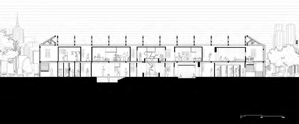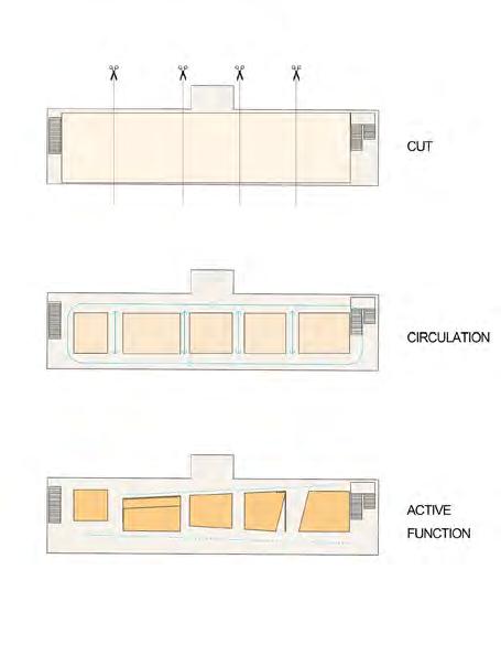 Inter-bands are stressed in the study of Koolhaas, in this context, three bands are created along the axis to accommodate three different themes. With the scale of 150m, 150m, 200m, the band beside the urban road has larger width to mediate urban interference and also take in urban influence.