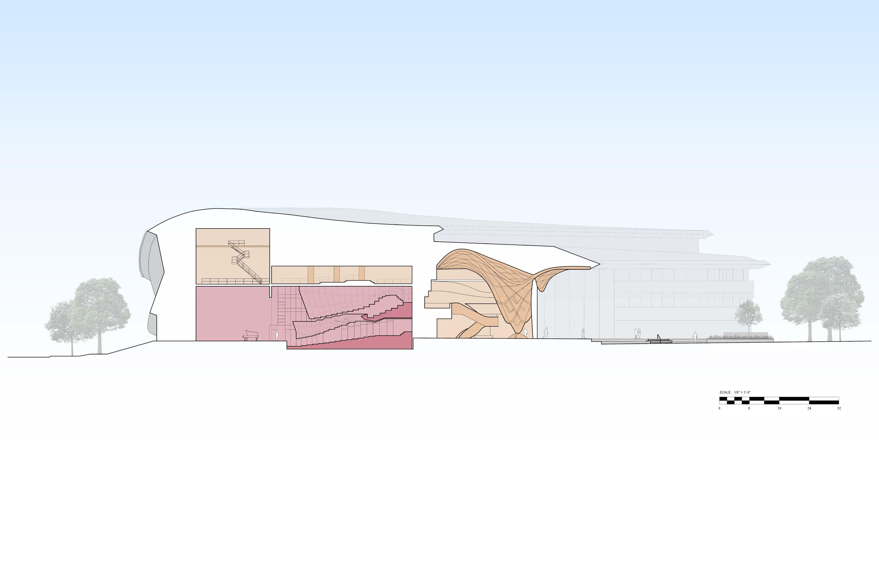 Becoming a beacon of hope for the younger generations of Youngstown. By providing a place where one can gain knowledge and allow for personal growth. Connecting the community by creating spaces where individuals can be inspired by the work of others. This is achieved by bringing nature into a space that has a clear divide and creating a building that brings it together. Individuals who would like to learn and be inspired can utilize the auditorium, workshops, research, classrooms, and more. Several outdoor spaces provide places to walk, sit, and relax, including an event garden, sports feld, and green roof.