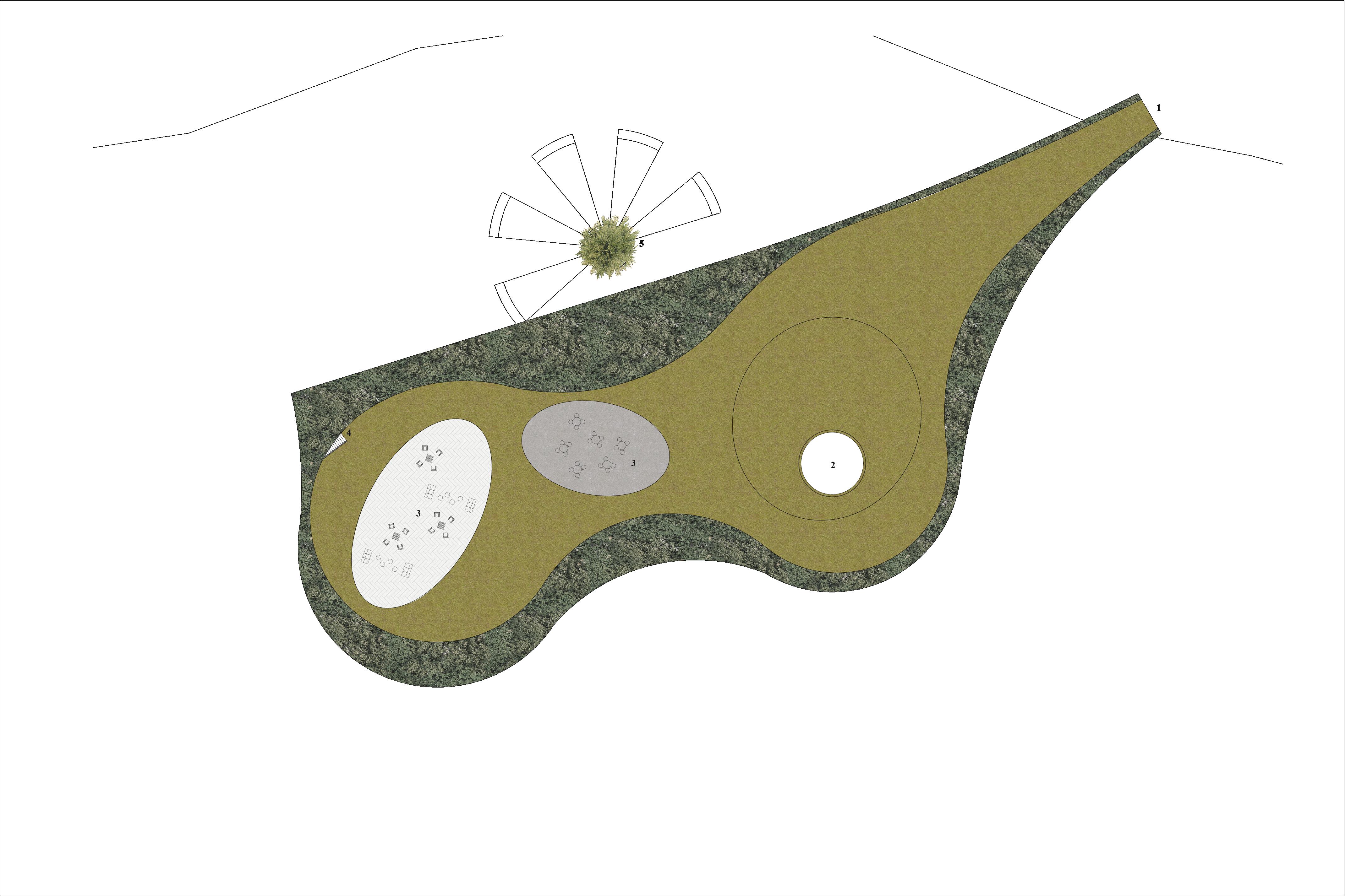 The topography on the site and the surrounding context show that there is a clear division between the north and south sides of the site. There is another layer of division on the site created by the houses on the side and the natural landscape. One can see how the different aspects of the site become more intertwined when a space acts as a bridge connecting nature, residents, and a revitalization program.
