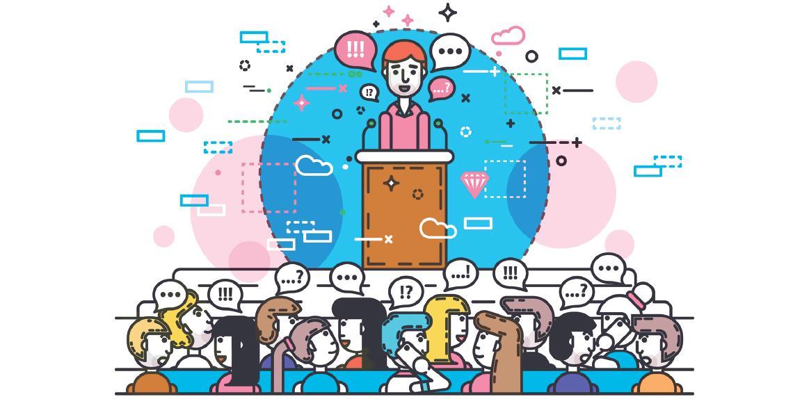 Conferencia: es una disertación en público sobre algún tema concreto. Cuando el disertante es una personalidad famosa o reconocida, se habla de una conferencia magistral. Esto implica que la persona tiene amplios conocimientos y experiencia sobre los temas a tratar