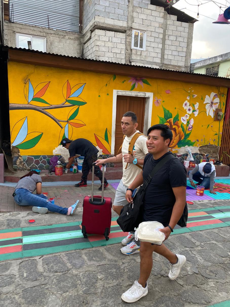 Afteranenvigoratingboatride acrossLakeAtitlán,wewere greetedbyBillywhoisthefirstof twovolunteerleadersinSanJuan LaLaguna