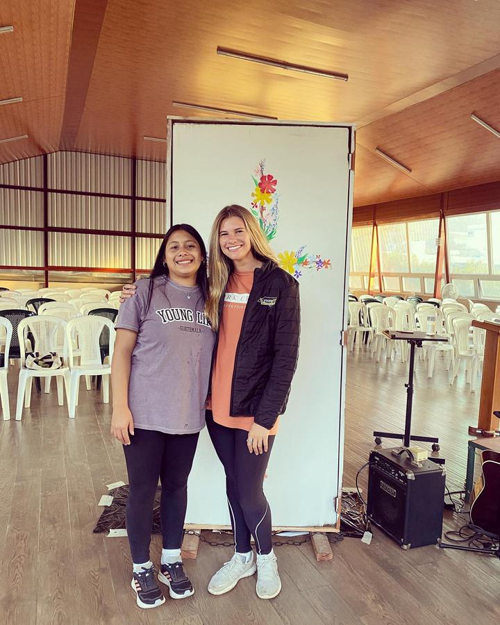 MeetOlgaSantosandStacyHenning. OlgaisaDGLstudentbeingmentoredby Stacy fromtheU S whoisservingonYL staffinGuatemala Olgaisstudying graphicdesignandmarketing while overseeingthreelocalareaYLclubsin Guatemala City.