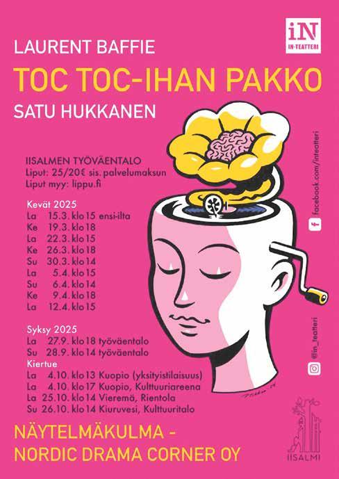 15.3. Tohtori Kiminkinen Spa Hotel Runnilla klo 14. TOC TOC IHAN PAKKO, In Teatteri Iisalmen Työväentalo, Pohjolankatu 11 A 15.3. klo 15, 19.3. klo 18, 22.3. klo 15, 26.3. klo 18, 30.3. klo 14, 5.4. klo 15, 6.4. klo 14, 9.4. klo 18, 12.4. klo 15, 27.9. klo 18, 28.9.