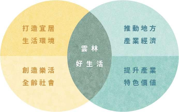 為操作主軸,透過本計畫之執行,達到「打造宜居生活環境、創造樂活全齡社會、推動地 方產業經濟、提昇產業特色價值、共創雲林總體發展」。
