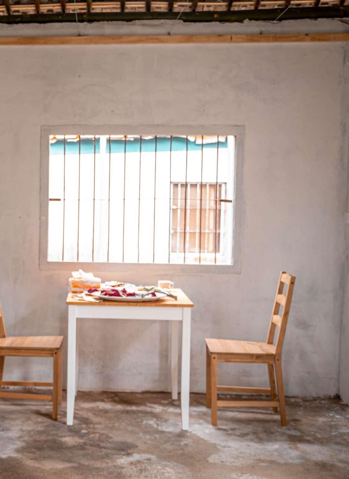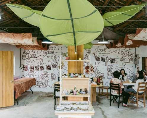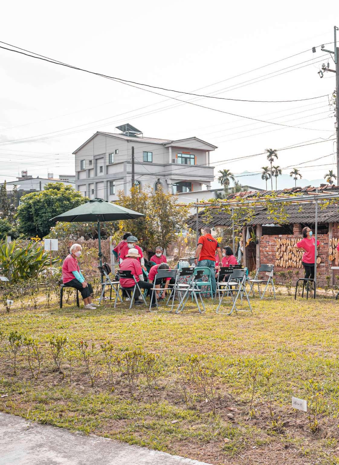 初步討論社區民眾之需求後,我們協助規劃設計居民交流空間、讓遊客能來此體驗的 DIY教室(敲拓染、多肉植物組合...)品嚐古坑咖啡,期望結合社區帶動咖啡產業與當地的 綠色照顧,規劃運用在地建材與資源搭建,連結社區產業達到永續再生之目的。配合旁邊 的療癒花園,發展具有地方特色的綠色照顧,營造社區高齡生活環境,以達長者在地健康 老化的目標。