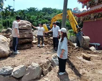 本次計畫協助位於華南社區鎮安宮後方空地,其目的是為華南社區觀光產業添樂趣性 以及學生之創造力,而我們將提供所學之專長及創意構想,協助計畫勘察基地位置與測量、 調查設計需求、設計發想、設計圖2D繪製、3D模擬圖,我們的設計構想與作品,最終將
