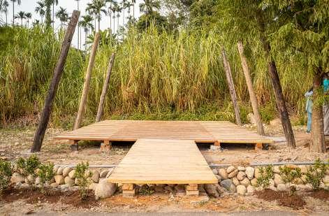 為105年施作的營造點,缺少休憩設施, 藉由本次施作加以活化,讓「良馨園」達到
