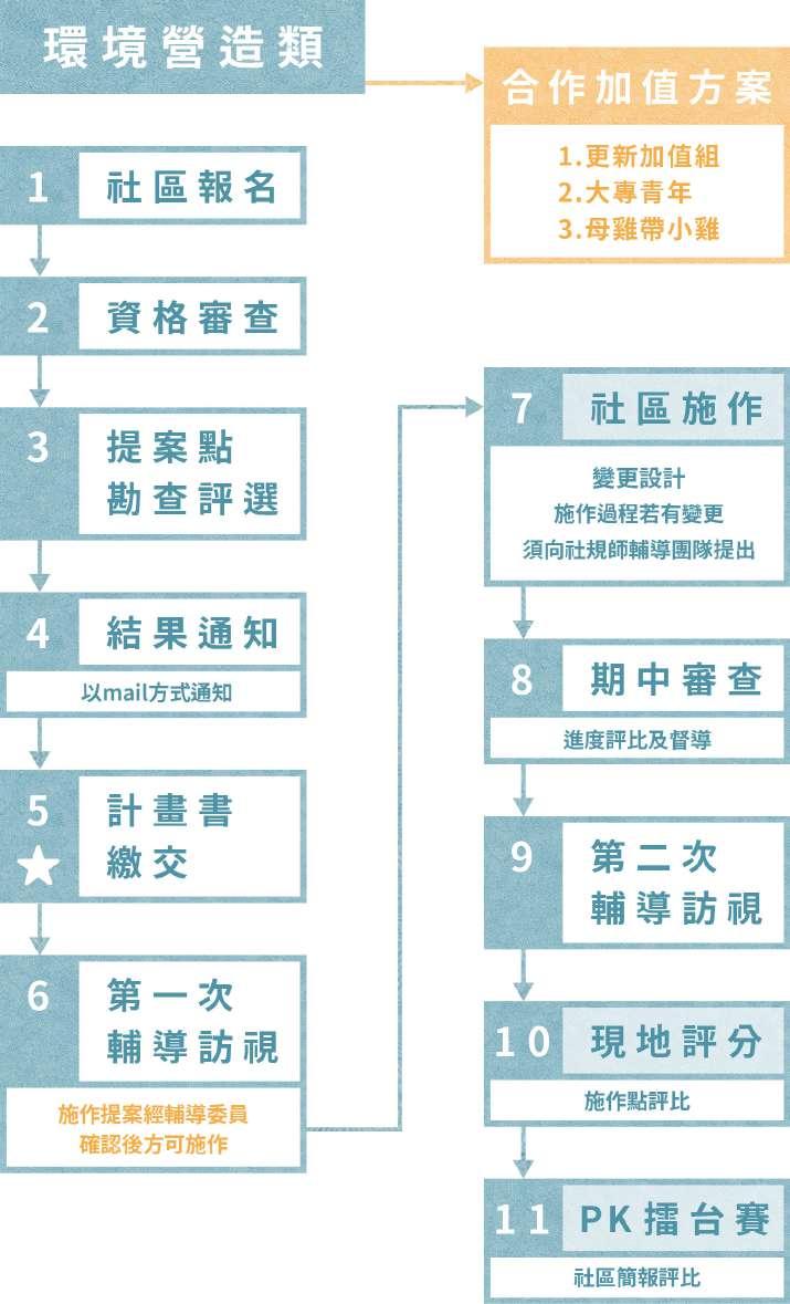 (二) 本年度新增合作加值方案,報名環境營造類(進階型)之參賽社區同時亦可報名參 與方案。