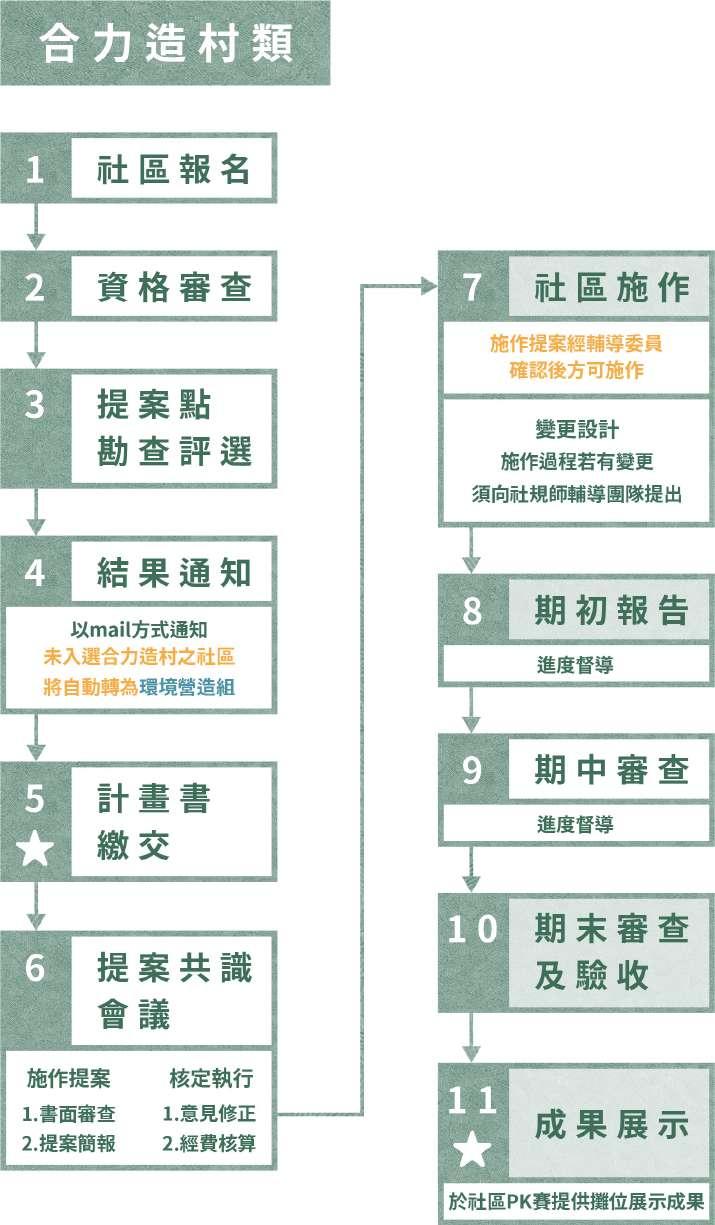 (三) 報名合力造村之社區須有社區資源盤點及跨局處整合能力,並與專業團隊合作。