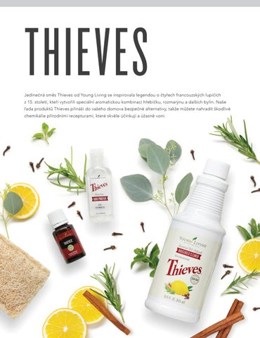 THIEVES Jedinečná směs Thieves od Young Living se inspirovala legendou o čtyřech francouzských lupičích z 15. století, kteří vytvořili speciální aromatickou kombinaci hřebíčku, rozmarýnu a dalších bylin. Naše řada produktů Thieves přináší do vašeho domova bezpečné alternativy, takže můžete nahradit škodlivé chemikálie přírodními recepturami, které skvěle účinkují a úžasně voní.