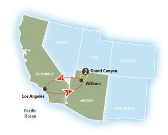 This morning you begin a truly scenic journey down to the California coast. Savor the beautiful rolling hills and amazing ocean views as you travel south. This evening, you stop for a night in Los Angeles before your vacation continues to the Grand Canyon. (Overnight in Los Angeles)