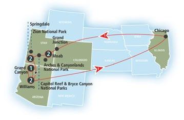 Chicago > Salt Lake City > Yellowstone National Park > San Francisco > Yosemite National Park > Los Angeles > Grand Canyon National Park > Williams > Chicago