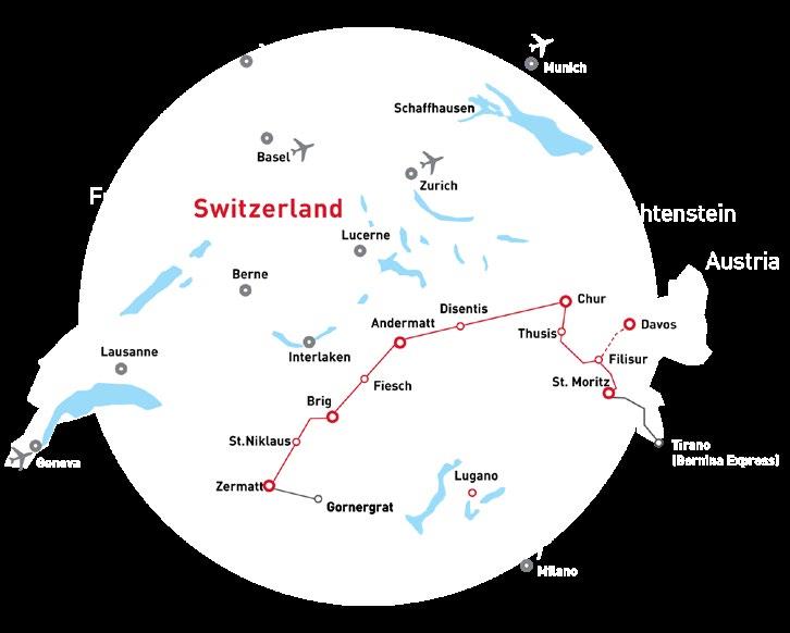 • Reservations for The GoldenPass, The Glacier Express, The Bernina Express train and Bus