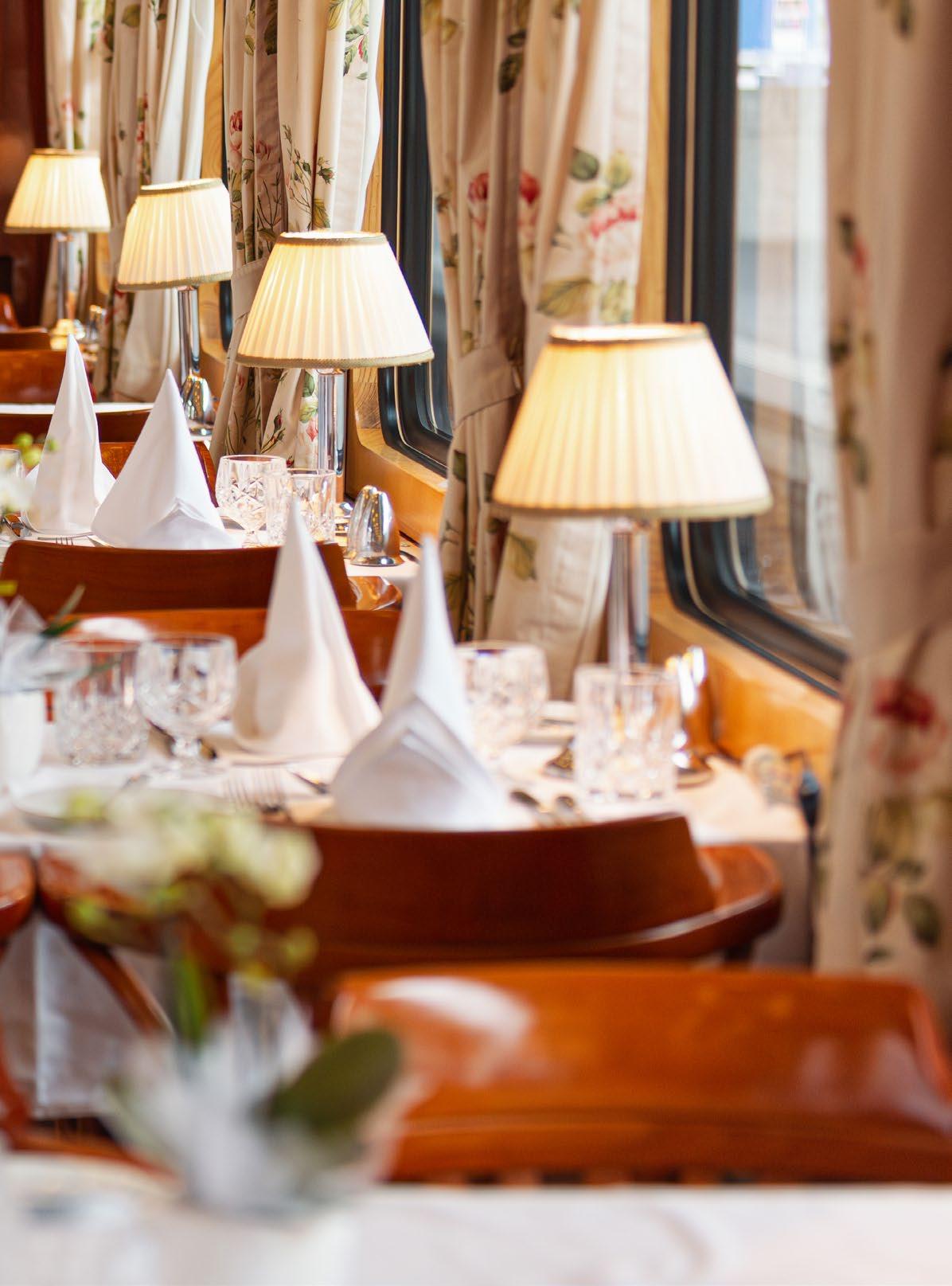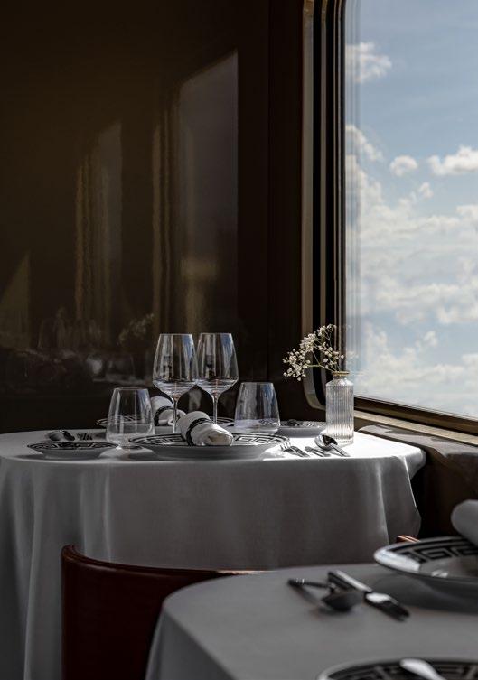 Step onto the luxury carriages and you are instantly transported to the 1920s and the Art Nouveau period. With Lalique glass panels, and fine wood marquetry, you are surrounded by style and comfort as you travel through magnificent scenery and ever-changing landscapes.