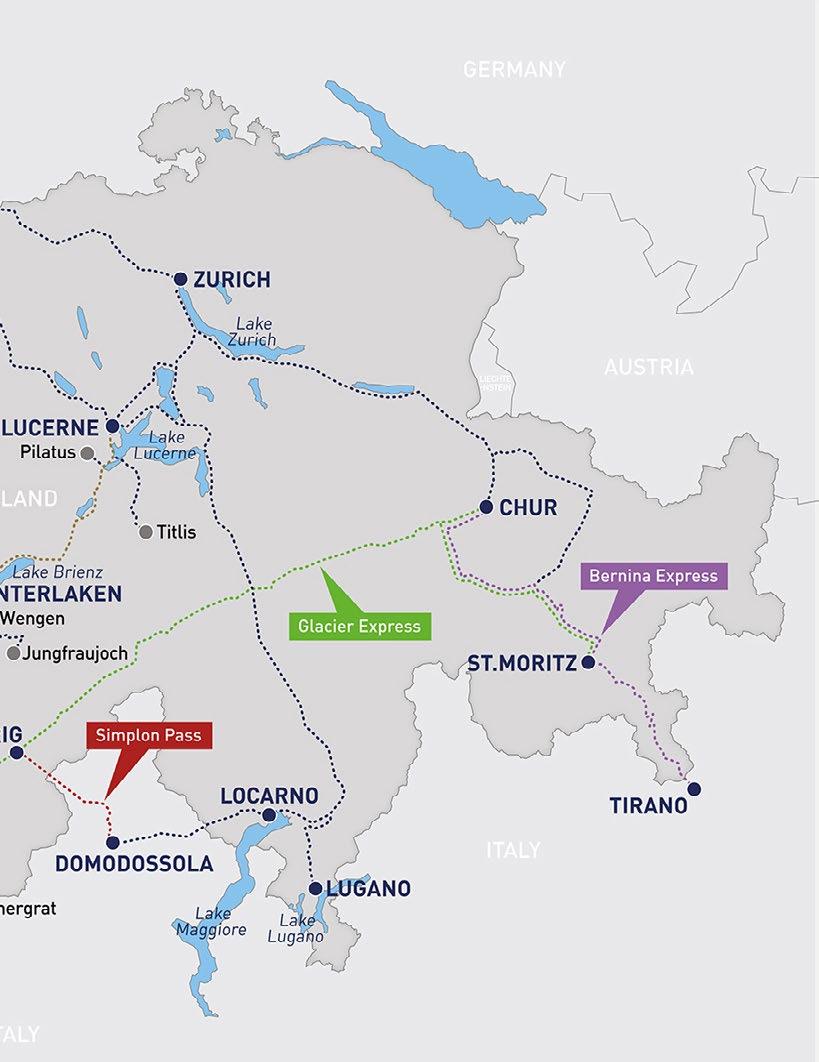 • Reservations for The GoldenPass, The Glacier Express, The Bernina Express train and bus