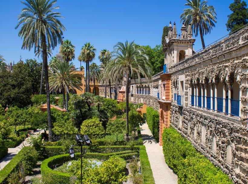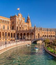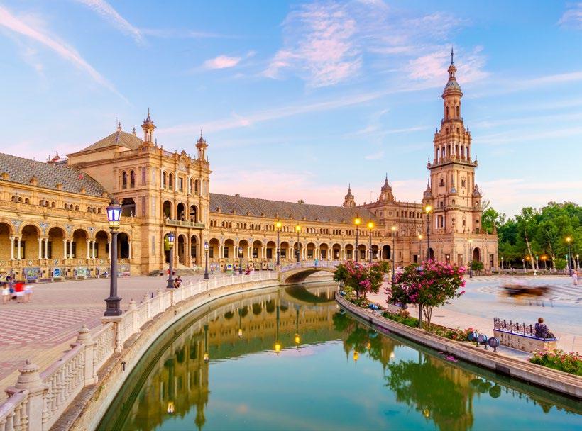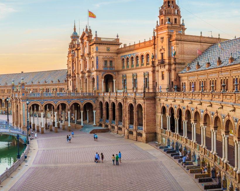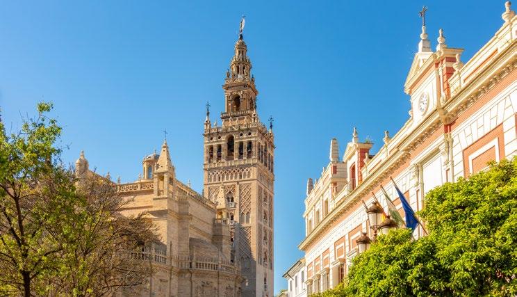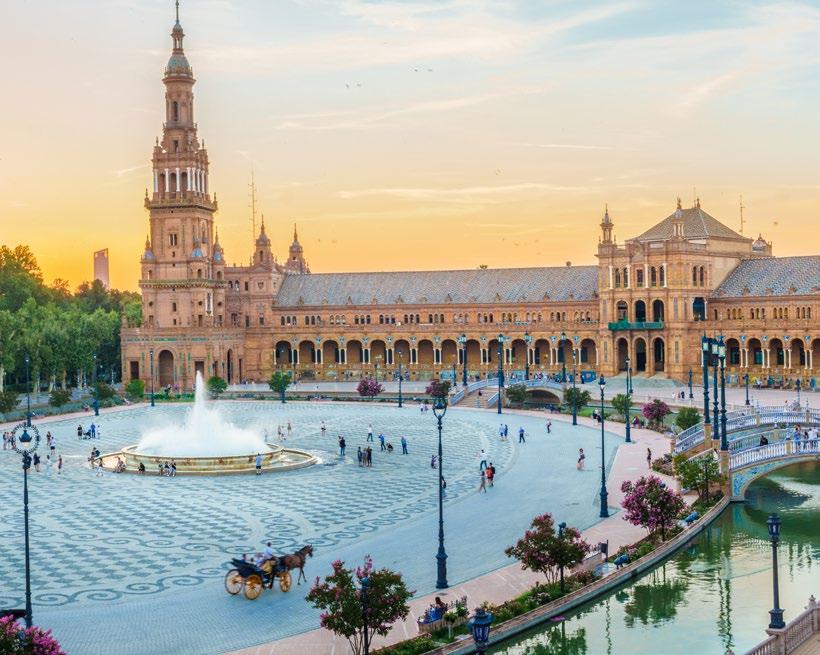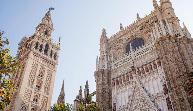 This morning, join a guided skip-the-line tour of Seville’s most treasured landmarks: the aweinspiring Cathedral and the Alcazar, a Moorish palace with stunning gardens. Learn about their rich history and the city’s multicultural influences. Later, indulge in a small-group food tour where you’ll sample the vibrant flavors of Andalusian cuisine, from gazpacho to local desserts like torrijas.