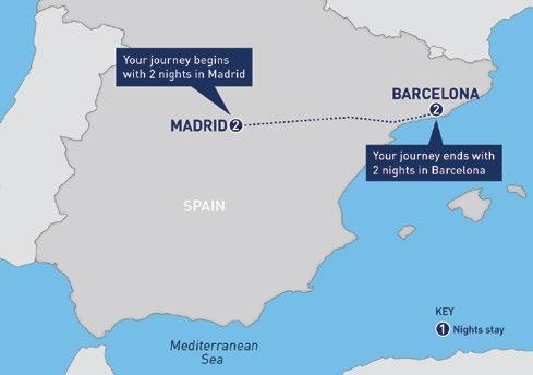Beat to crowds at the Sagrada Familia this morning on a small group tour of Gaudi’s masterpieces. In the evening take a stroll along the Ramblas and enjoy some tapas.