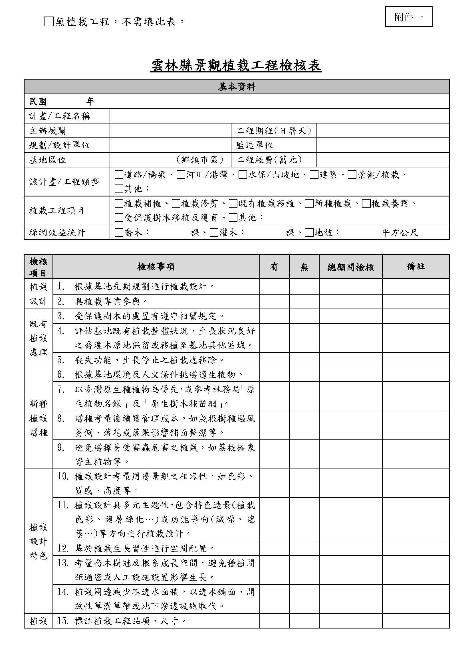 入地方植栽工程建設,型塑雲林特色綠色景觀亮點計畫。