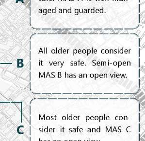 The node at MAS A is the eye of the whole route. Due to the good quality of the public space in MAS A, the greenery and landscaping on the ground level are kept intact. At the beginning of the silver hair route, the elderly can see a pleasant view and are tempted to continue using the route to see more of it. So this is the eye of the whole route.