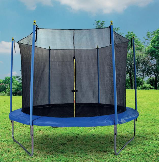 Cama elástica con red de protección para un entorno seguro pensada para exterior. El montaje es fácil, con muelles de acero galvanizado para dar estabilidad y robustez.