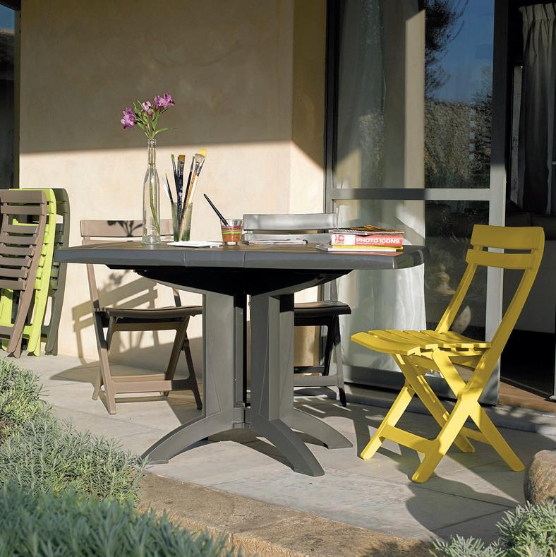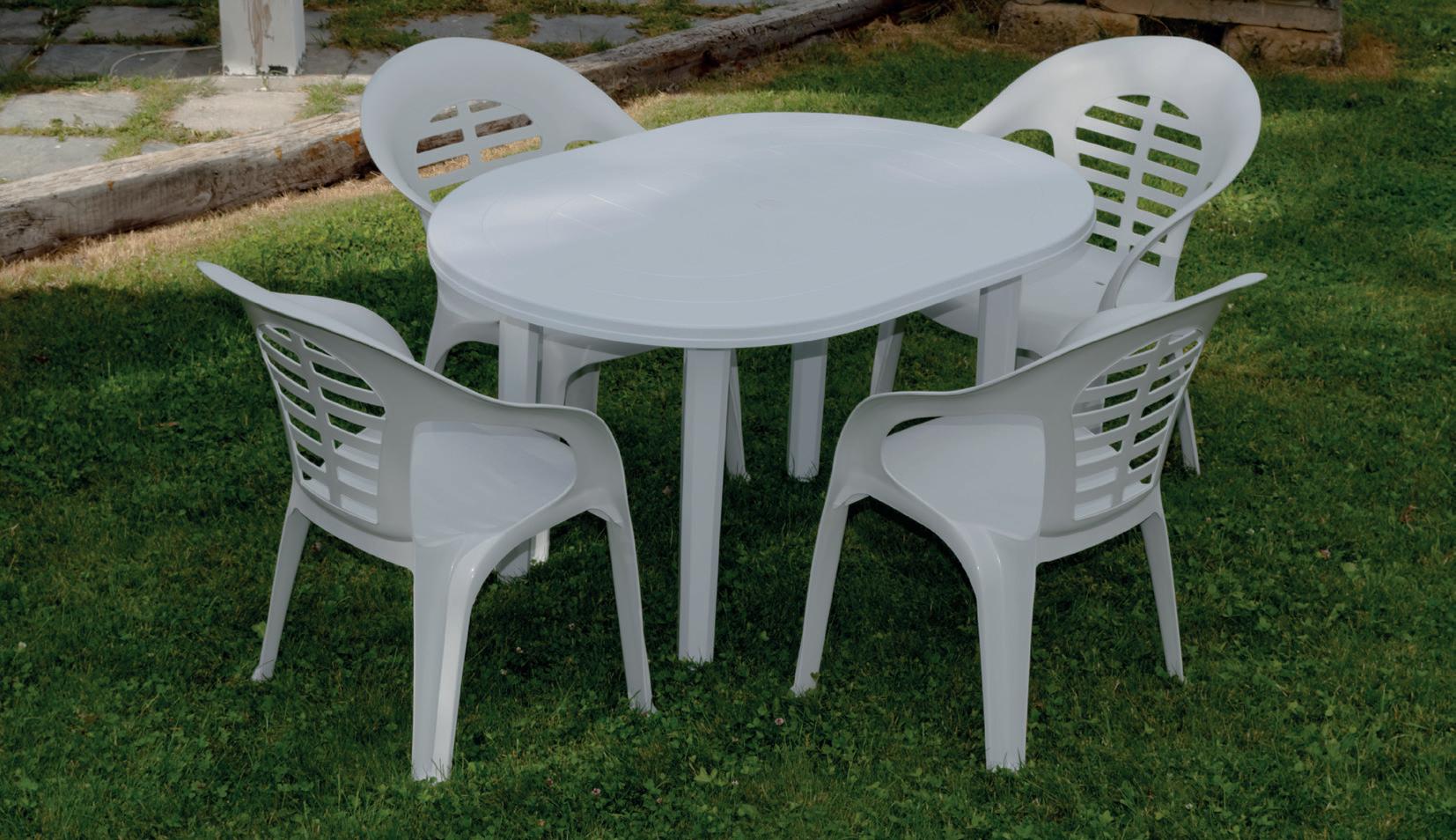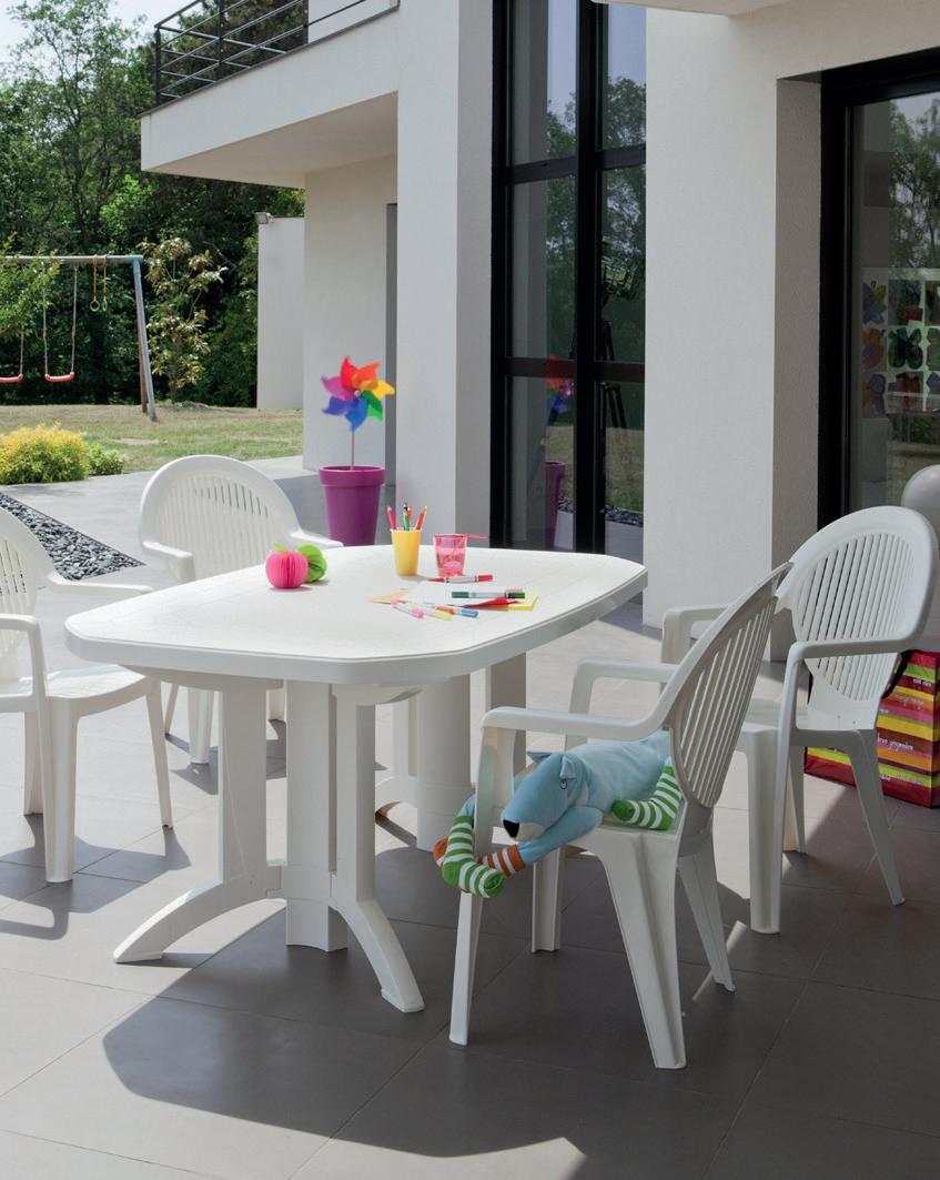 Monobloc apilable con protección al sol y de gran resistencia, respaldo y asiento de gran amplitud. Soporta hasta 140 kilos. Extra fuerte. MESA OVAL 031307
