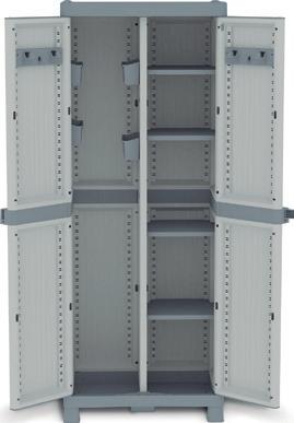 181,8x70x43,8 cm. Armario escobero 2 puertas. 4 baldas, cada estante soporta 15 kg. Incluye Accesorios.