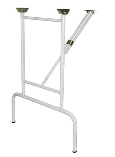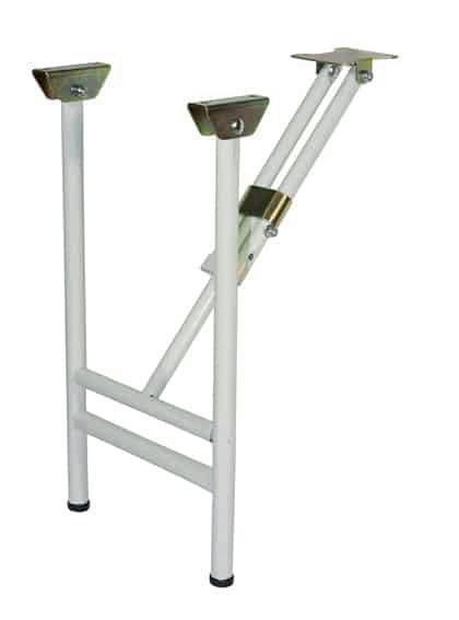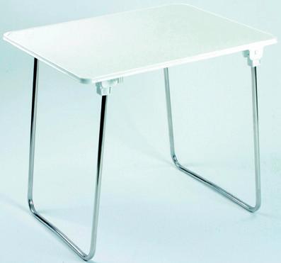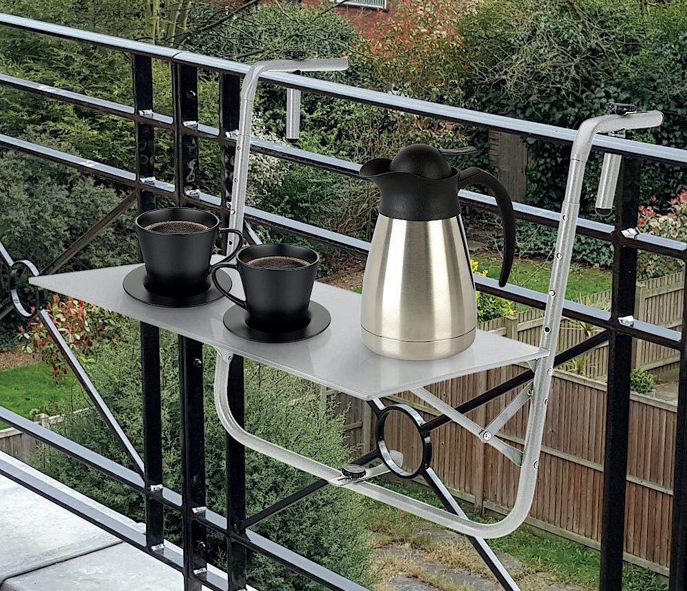 MESITA PARA BALCÓN PLEGABLE 016599 Color blanco. 60x43cm, espesor 0,7mm, altura regulable, tubo principal Ø 22mm, tubo interior Ø 1cm, con sistema de bloqueo y gancho redondo.
