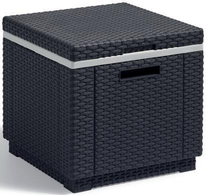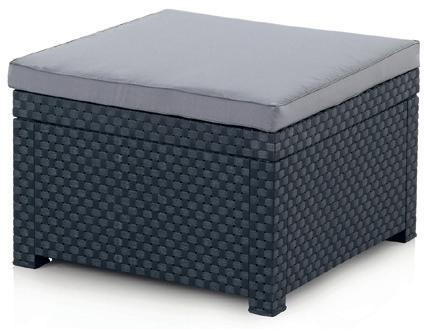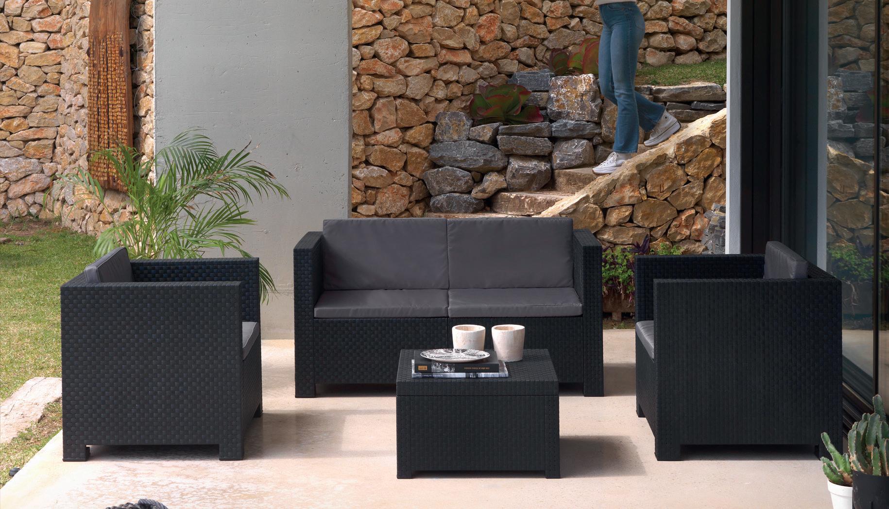 Resina imitación ratán color antracita y patas de metal. Ideal para espacios reducidos.